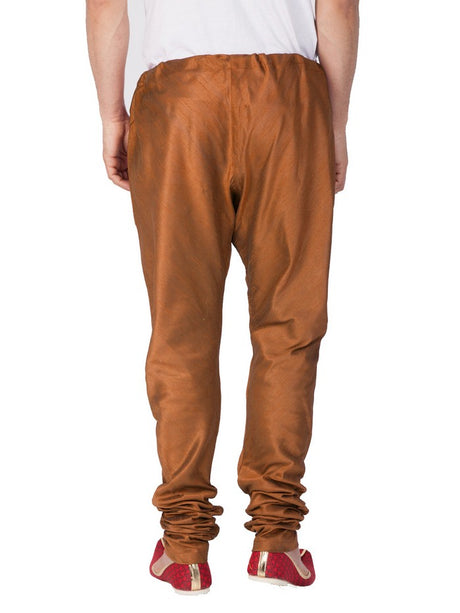 Men's Cotton Art Silk Solid Churidar Pajama In Brown