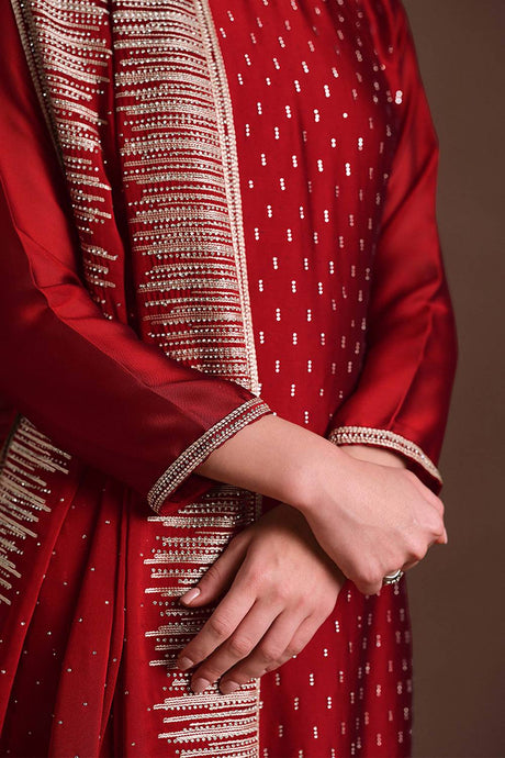Red Floral Embroidered Velvet Punjabi Suit Set