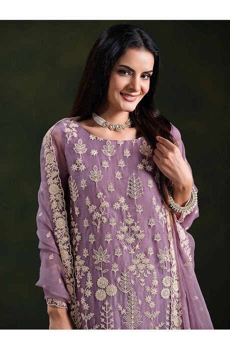 Lavender Floral Sequin Net Palazzo Suit Set