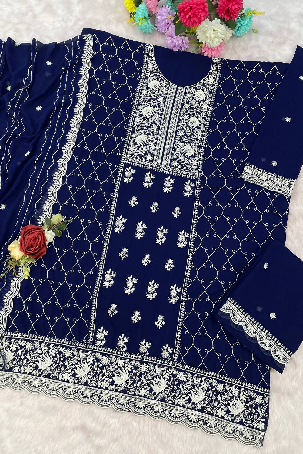 Blue Floral Embroidered Georgette Palazzo Suits