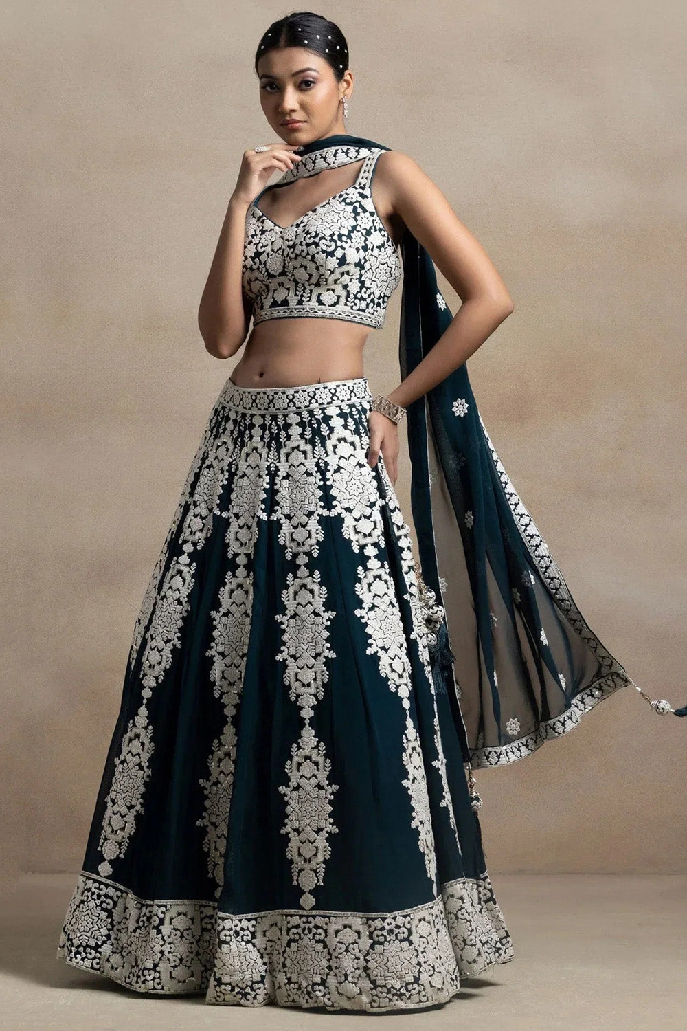 Step into the spotlight with our Lehenga a dazzling creation designed to make your special moments unforgettable. Crafted from premium Georgette this lehenga offers a perfect combination of elegance and ease, keeping you graceful all day long. The exquisite Embroidered makes this lehenga a masterpiece of traditional craftsmanship. Whether it’s Festive, Mehendi, Sangeet or a grand celebration, this lehenga is the perfect choice to make a statement. Pair it with an ornate choker, a matching dupatta, and embellished stilettos to complete the regal look. Add a sleek bun or cascading curls for added glamour. Make every moment magical with the timeless allure of Lehenga