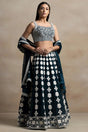Green Embroidered Net Lehenga