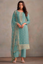 Light Blue Floral Embroidered Organza Kurti Pant Set