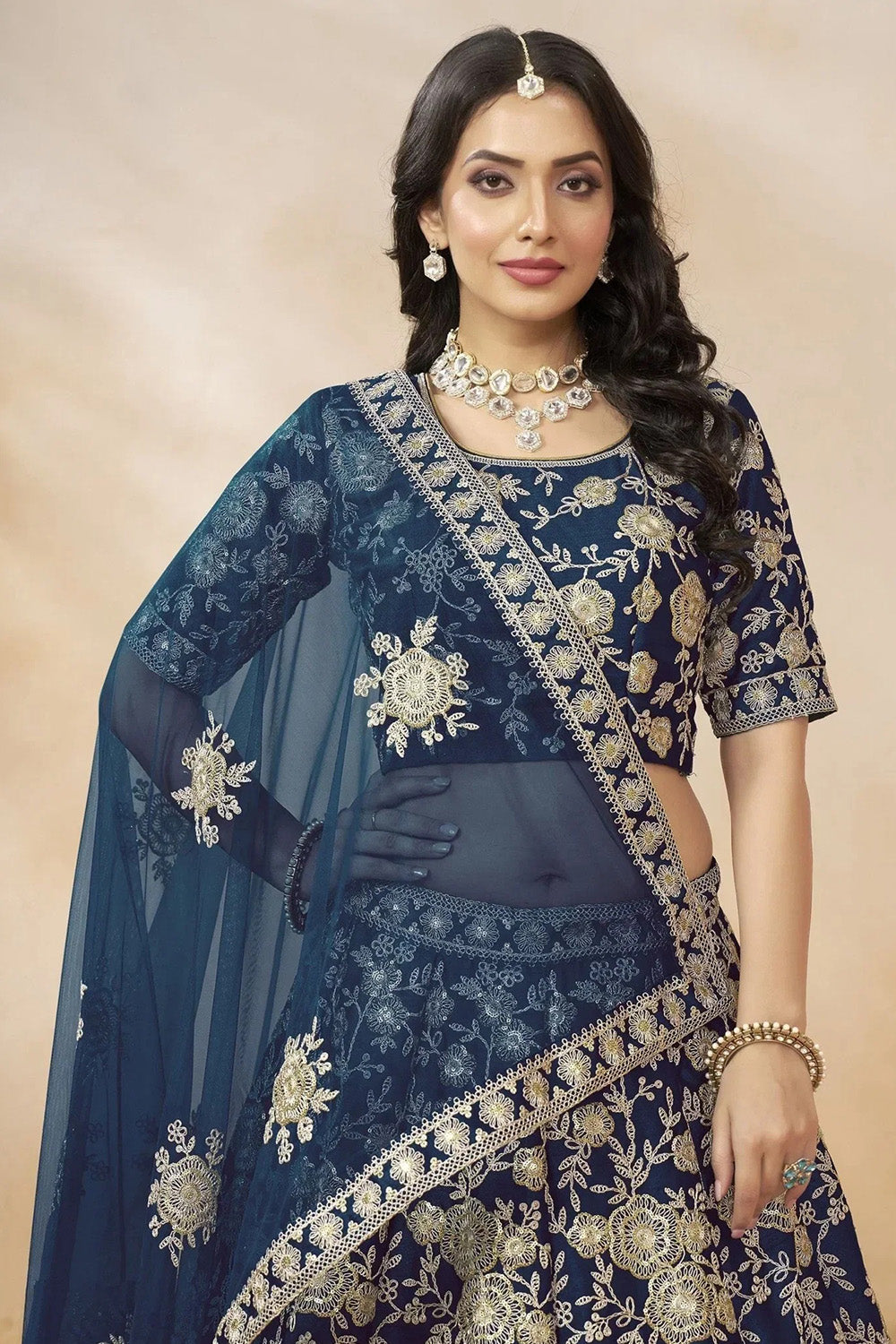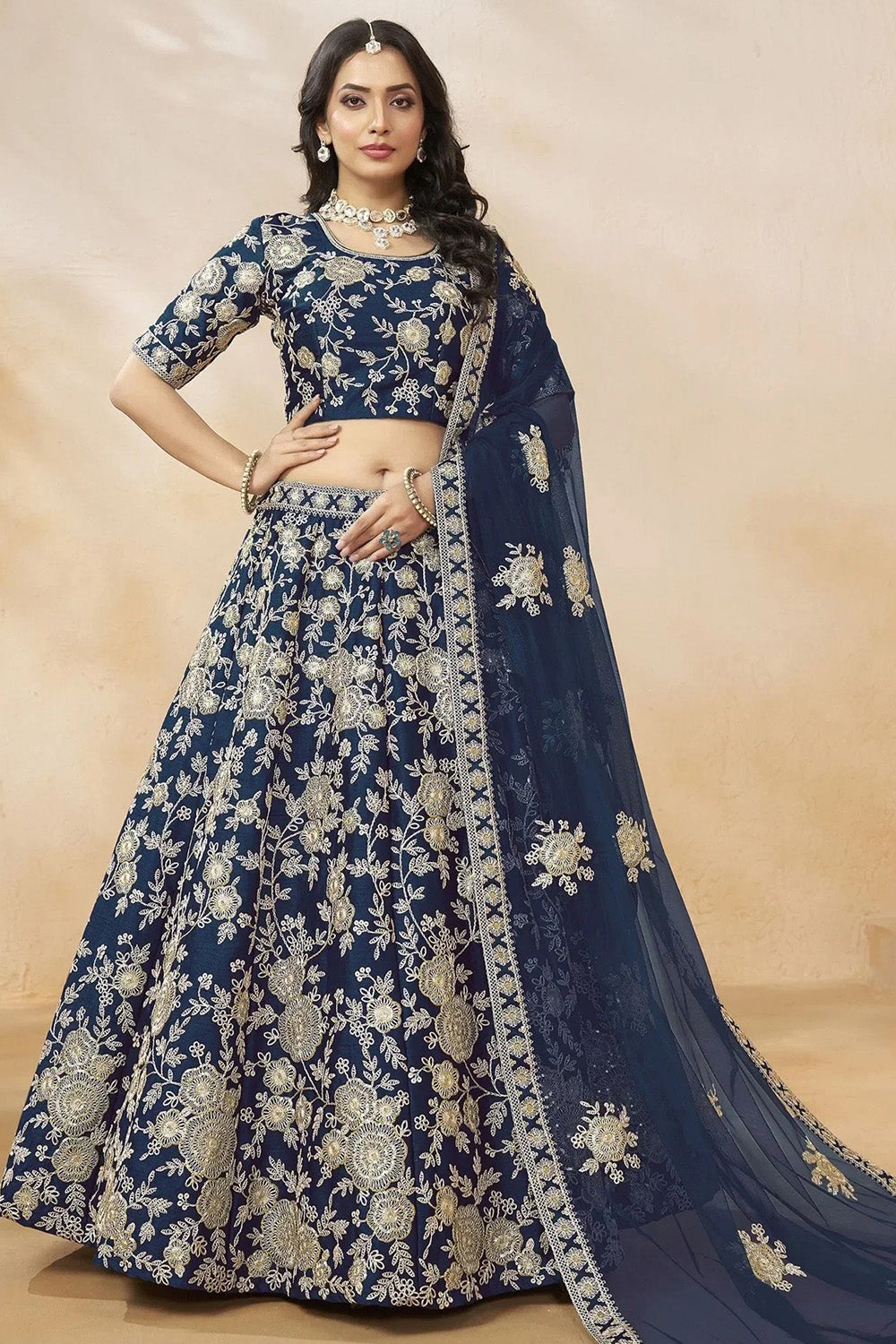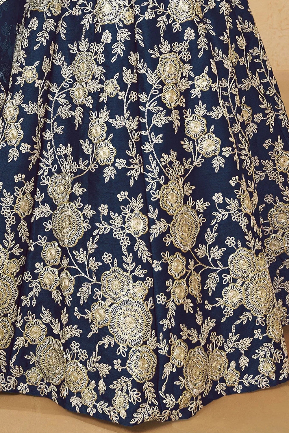 Navy Blue Sequin with Floral Embroidered Silk Lehenga