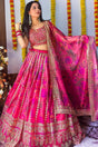 Pink Floral Printed with Embroidered Border Silk Lehenga