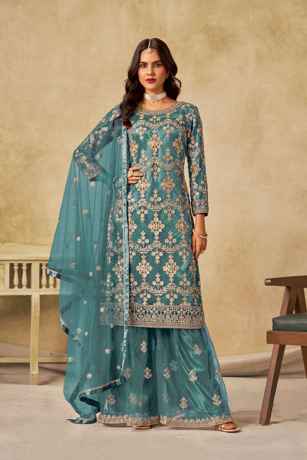 Step into effortless style with our Palazzo Suit Set crafted for the modern woman who cherishes tradition. Made from soft Net it keeps you comfortable all day long. The Floral Sequin design lends a touch of sophistication to your outfit. Perfect for Festive, Sangeet, Mehendi this Palazzo Suit Set is a must-have for versatile styling options. Style it with minimalistic accessories and flats for a casual look or jewelry and heels for special events