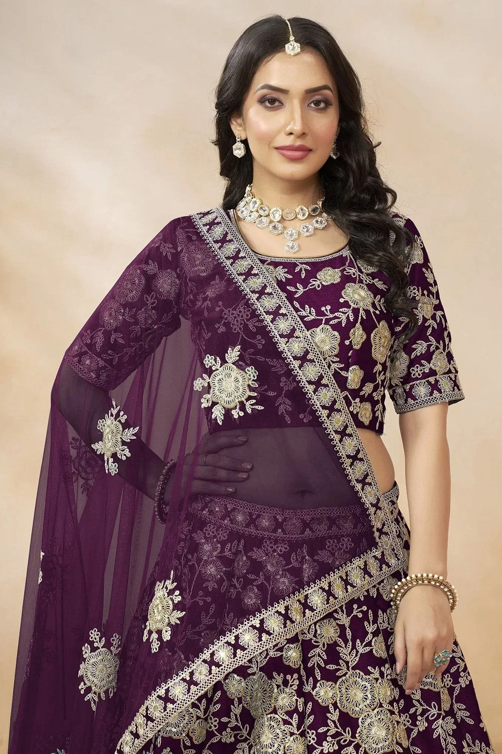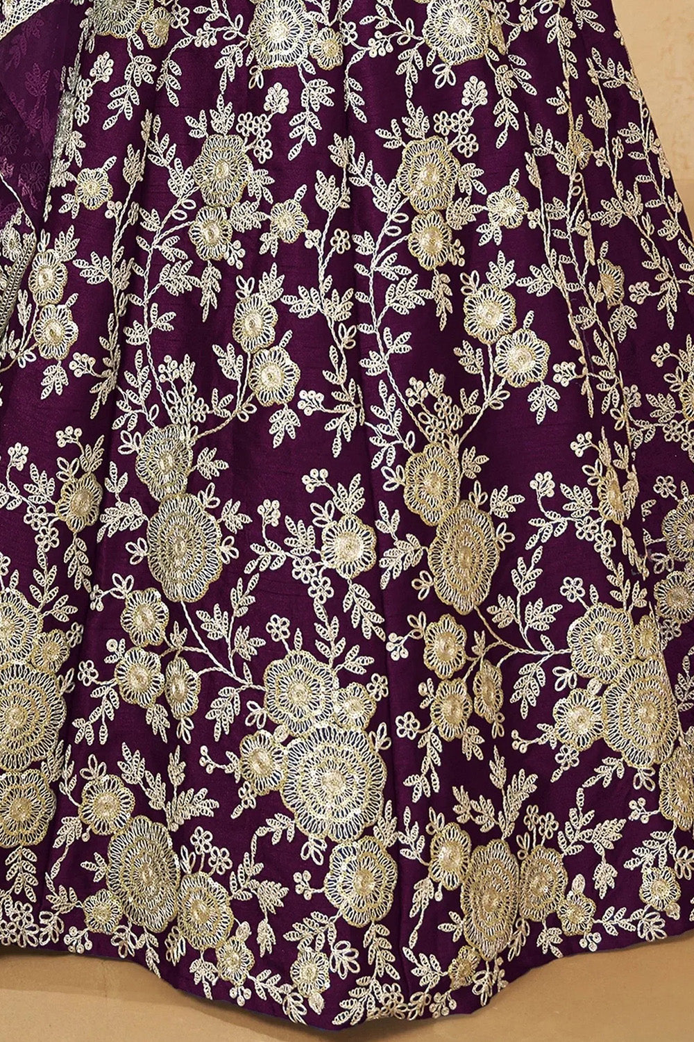 Violet Sequin with Floral Embroidered Georgette Lehenga