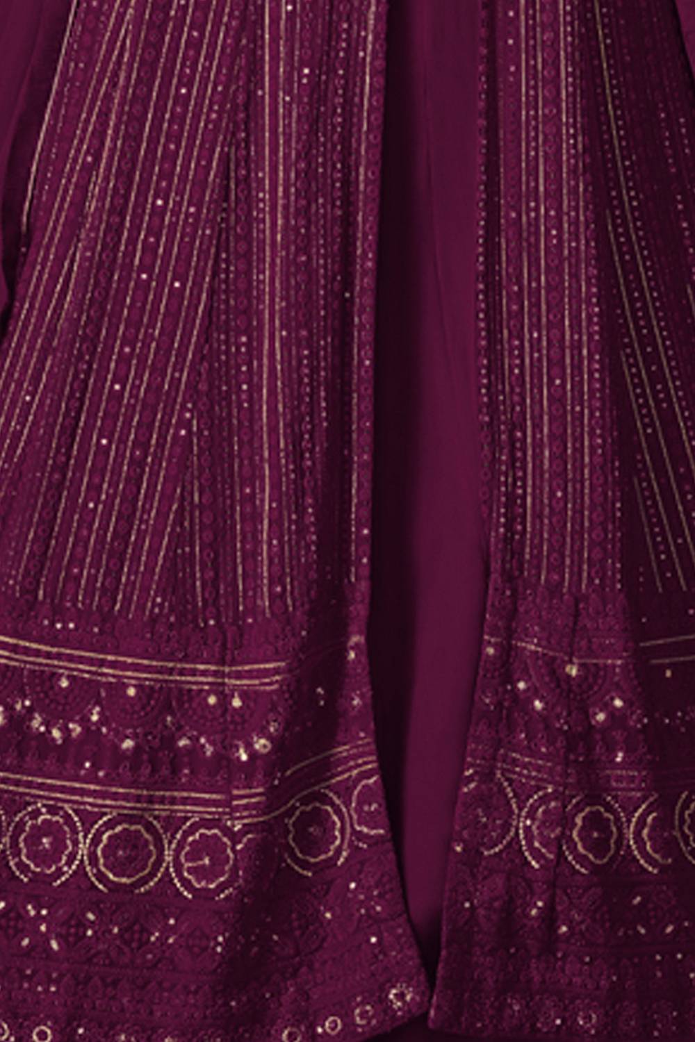 Wine Sequin with Embroidered Georgette Gown