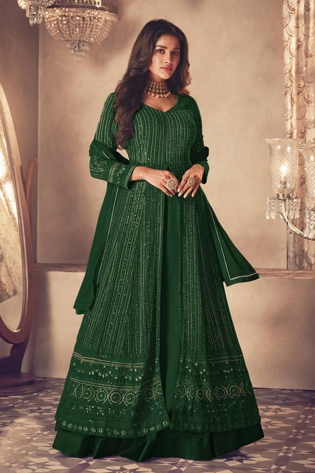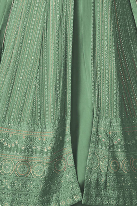 Green Sequin with Embroidered Georgette Kurti Pant Set