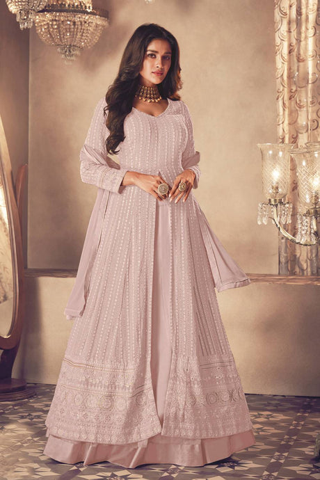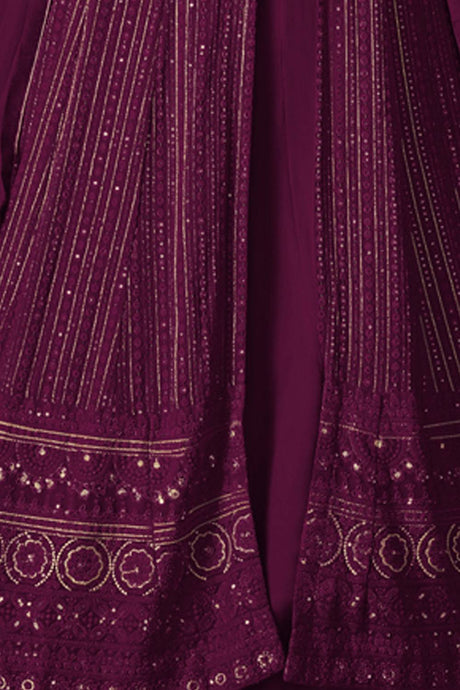 Dark Pink Floral Embroidered Georgette Sharara Suits