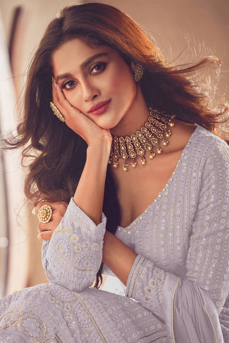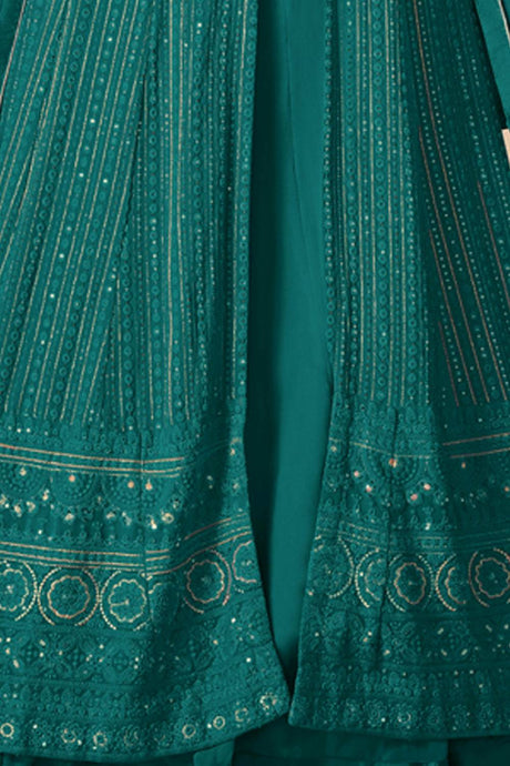 Turquoise Floral Embroidered Georgette Sharara Suits