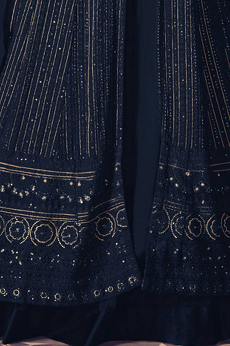 Black Sequin with Floral Embroidered Georgette Sharara Suits