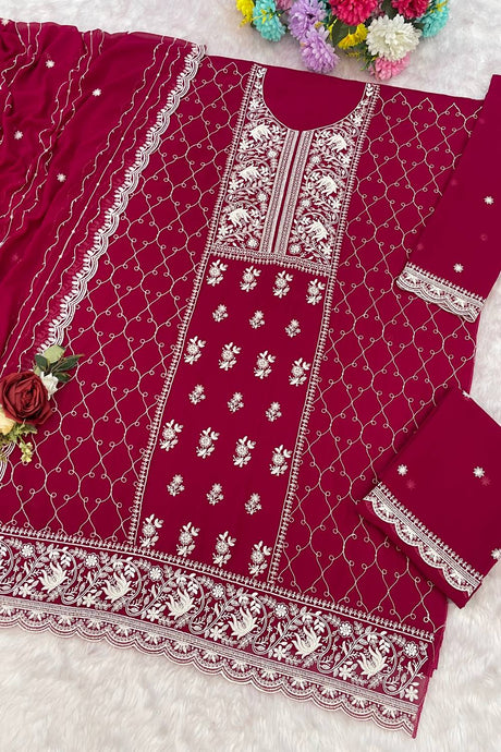 Pink Floral Embroidered Georgette Palazzo Suits