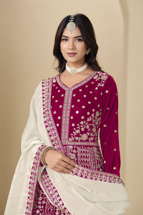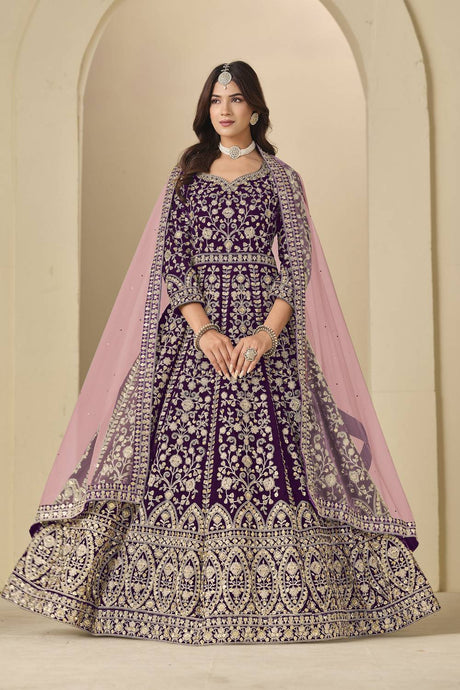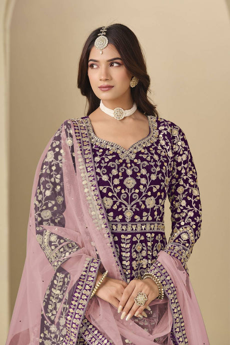 Purple Floral Embroidered Velvet Punjabi Suit Set