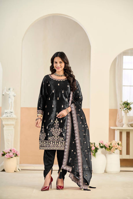Black Floral Embroidered Velvet Punjabi Suit Set