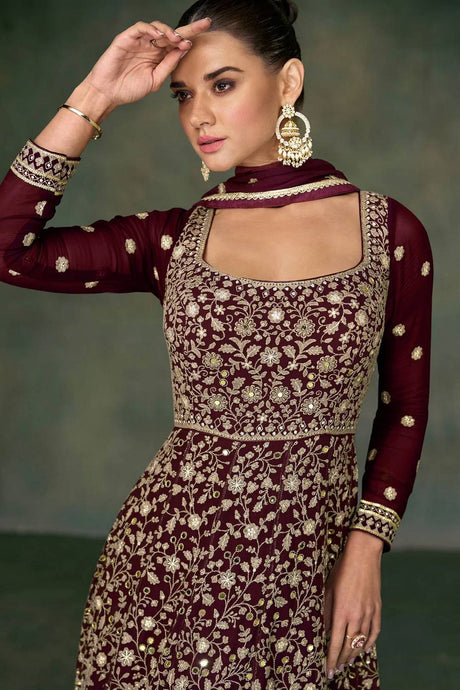 $190.00 USD$238.00Unit price /UnavailableWine Sequin with Embroidered Georgette Lehenga
