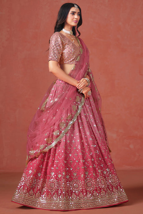 Pink Sequin with Floral Embroidered Silk Lehenga