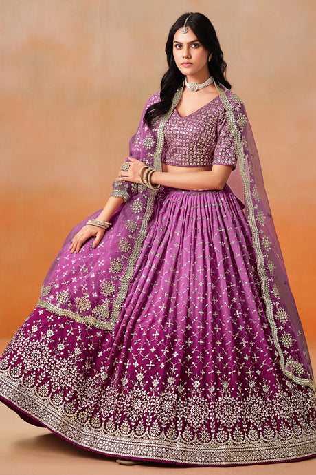 Violet Printed with Sequin Chinon Silk Lehenga