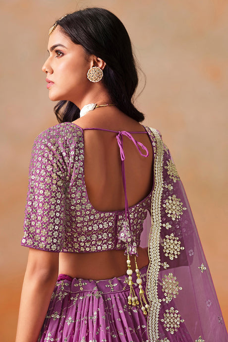 Violet Floral Sequin Georgette Lehenga