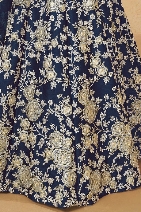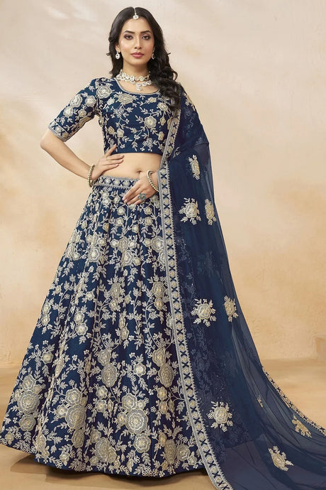 Navy Blue Floral Sequin Georgette Lehenga