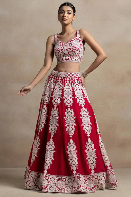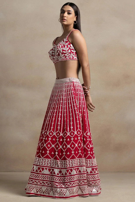 Red Embroidered Georgette Lehenga