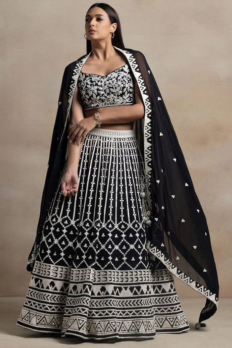 Black Embroidered Georgette Lehenga