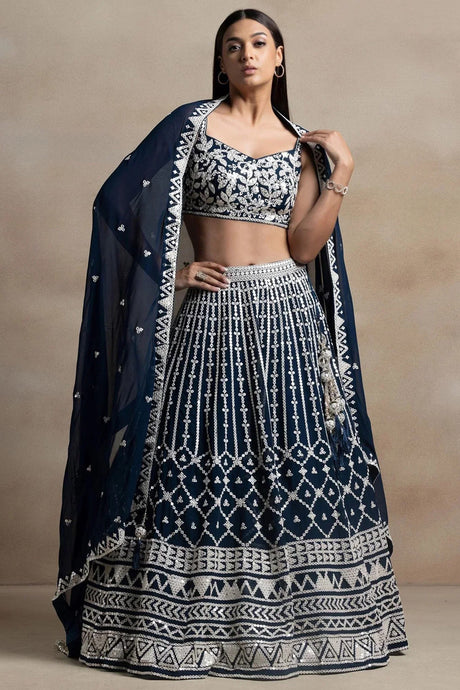 Navy Blue Embroidered Georgette Lehenga