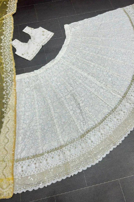 White Floral Embroidered Net Lehenga