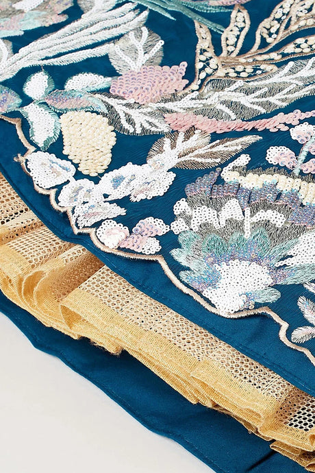 Blue Floral Embroidered Net Lehenga