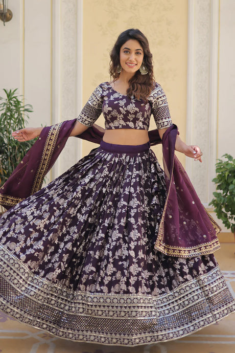 Violet Embroidered Silk Lehenga