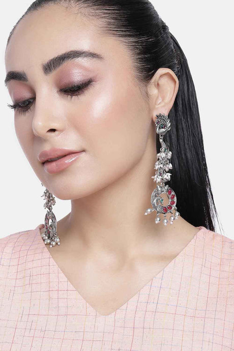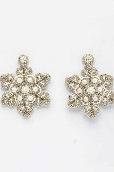 Silver Beadwork Plastic Drop Earrings