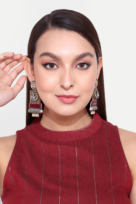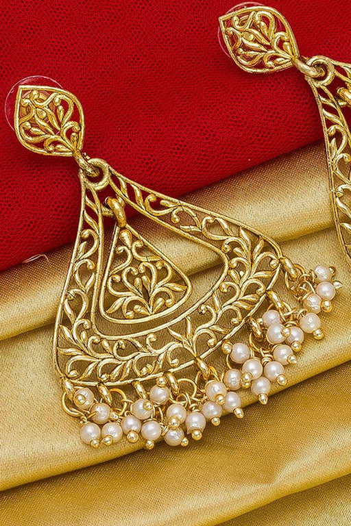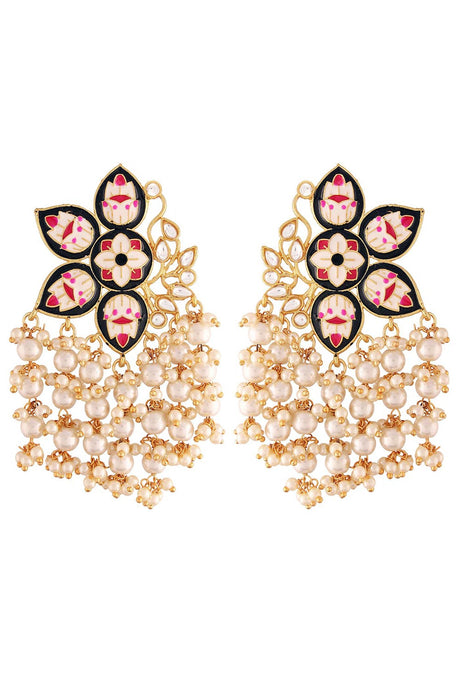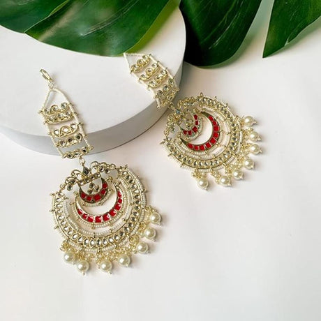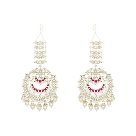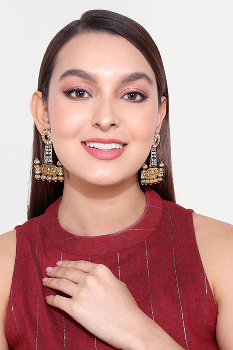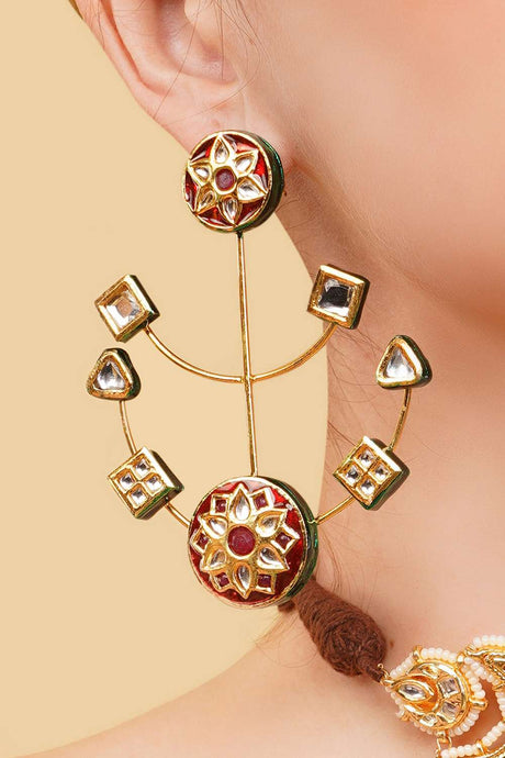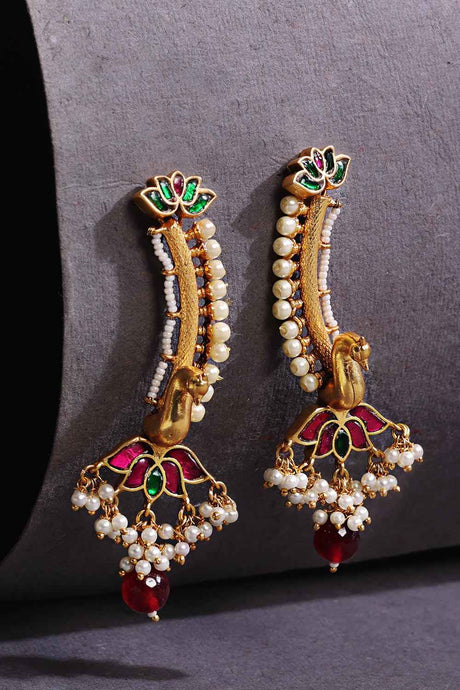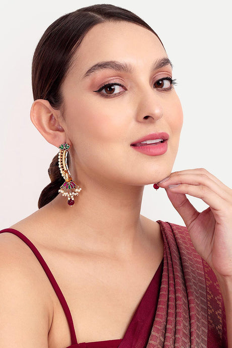 Red Gold-Plated Kundan And Pearls Drop Earring