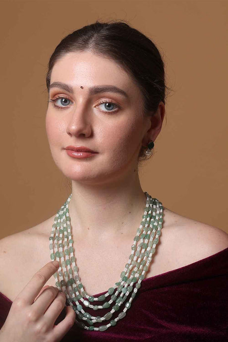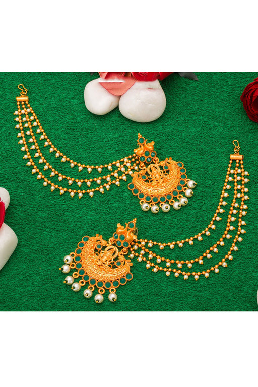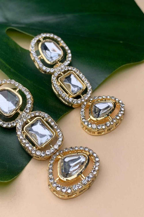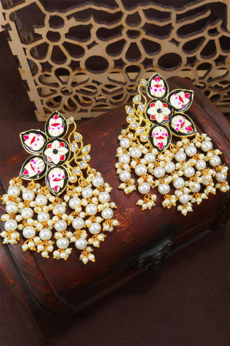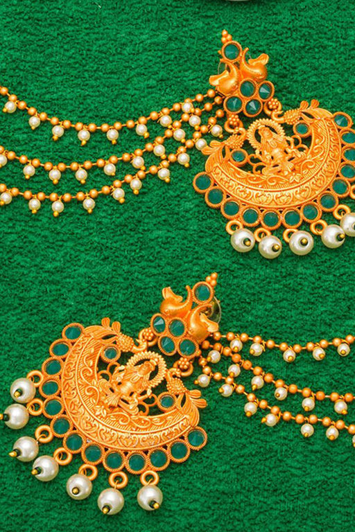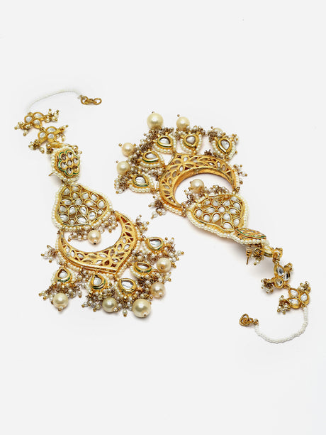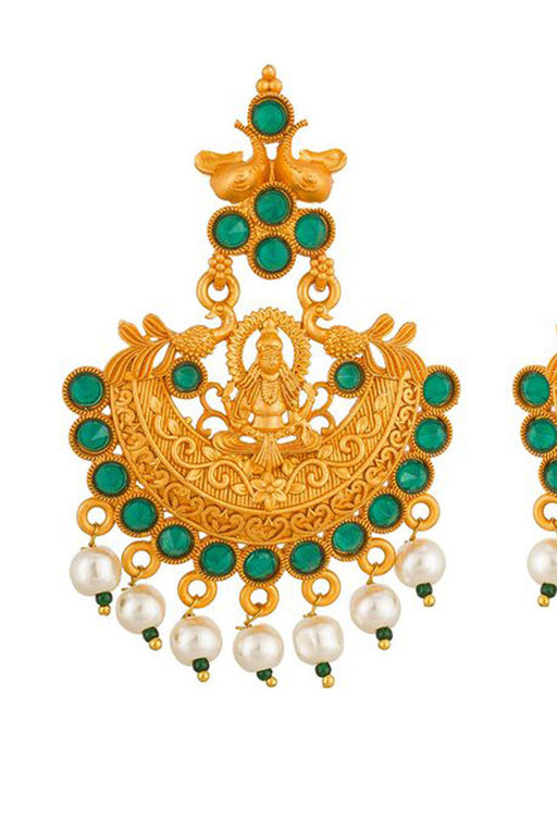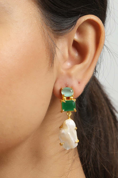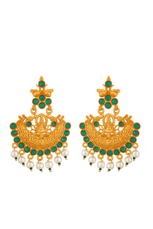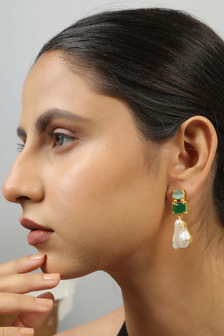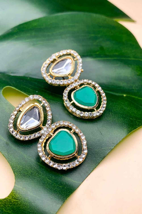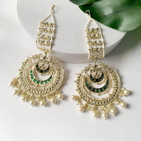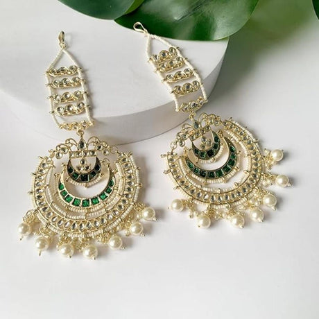 Sale price $31.00 USD Regular price $34.00Unit price /Unavailable Green And Cream Gold-Plated Kundan And Pearls Drop Earring