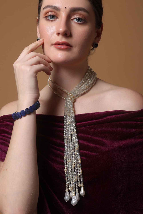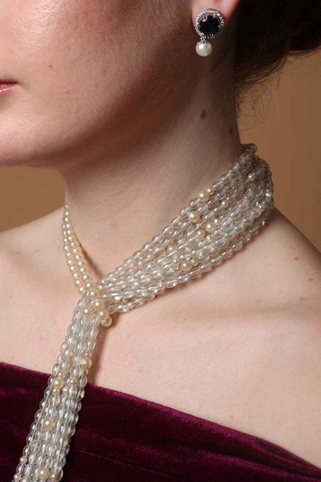 Cream And White Gold-Plated Kundan And Pearls Drop Earring