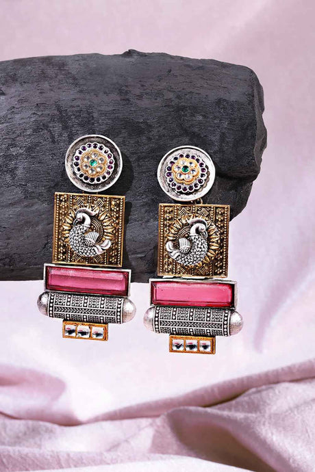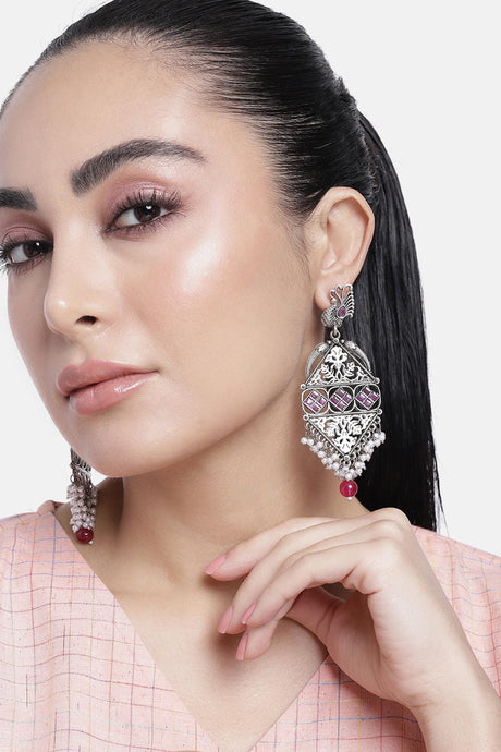 Women's Sterling Silver Kundan Drop Earring In Pink
