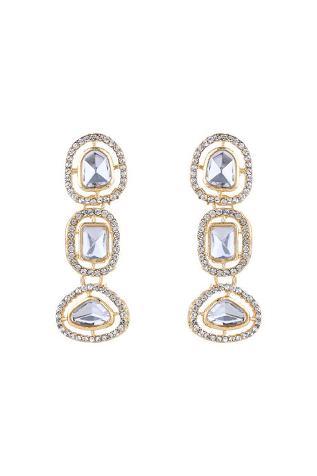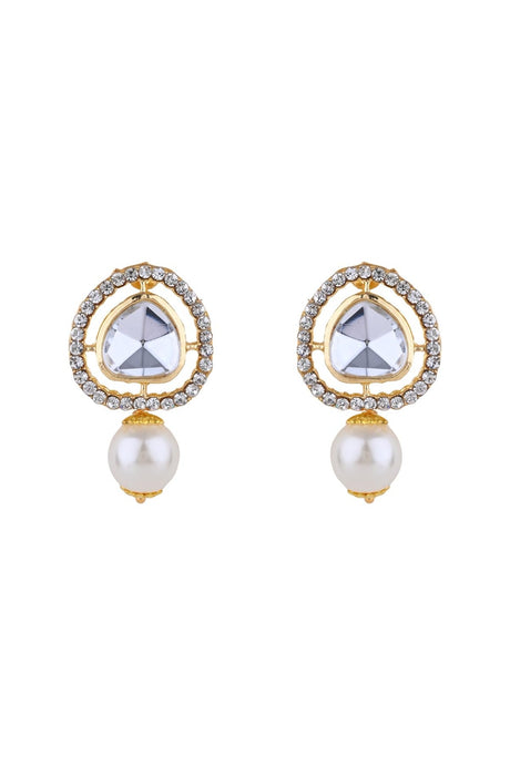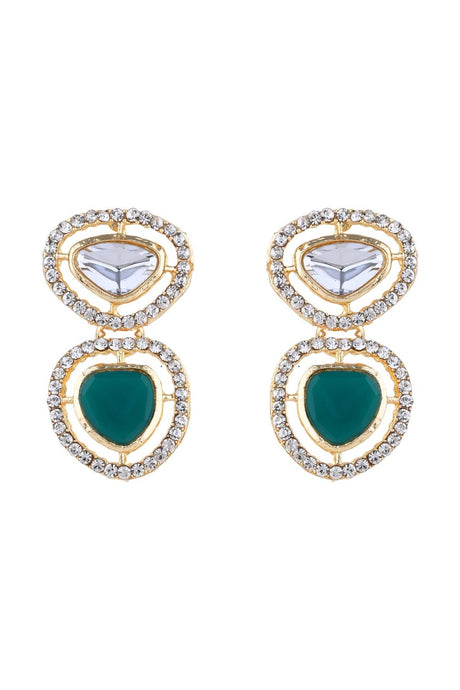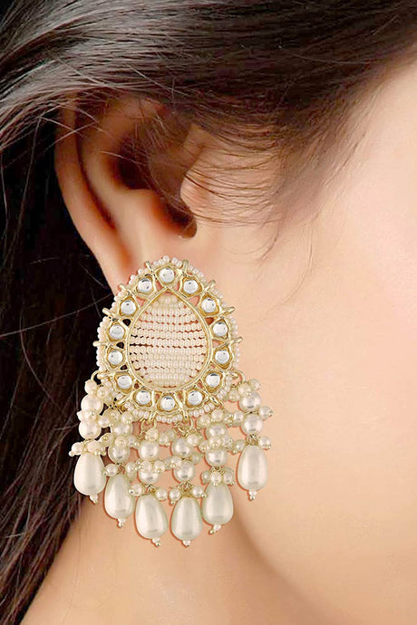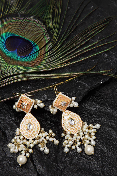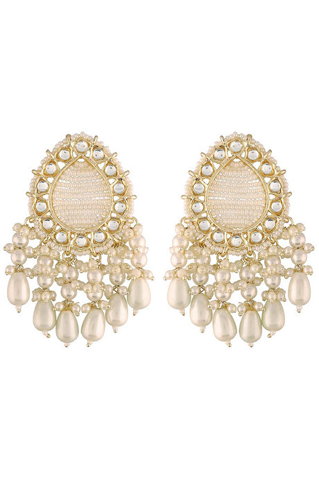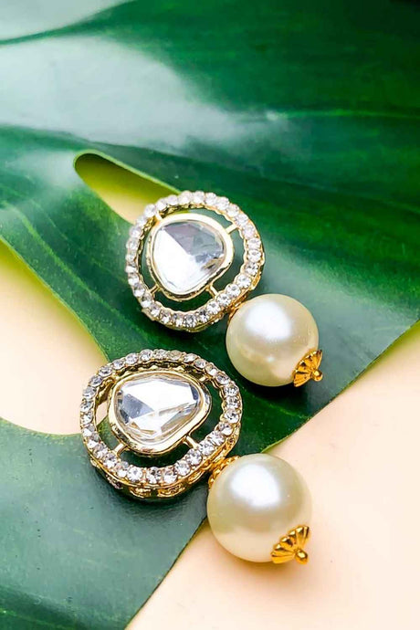 Green And Cream Drop Earring With Kundan And Pearls