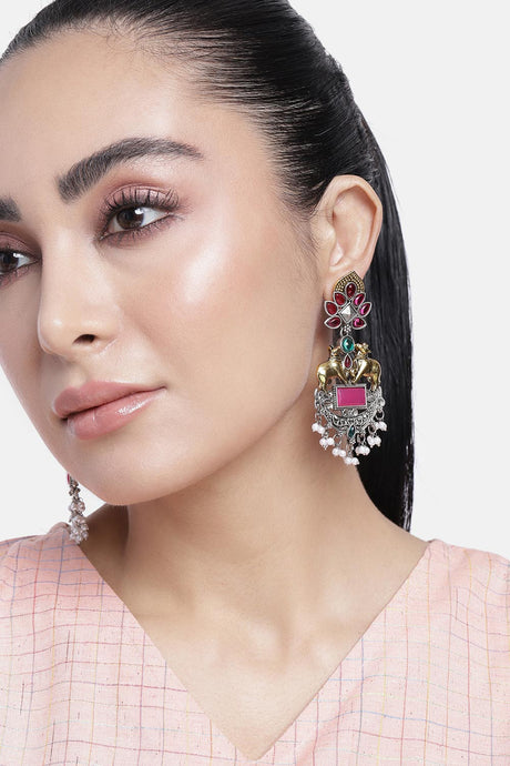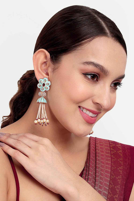 Green And Pink Gold-Plated Kundan And Pearls Drop Earrings