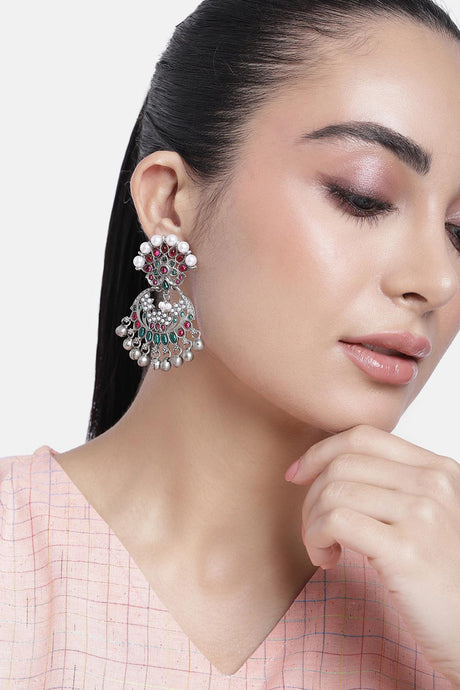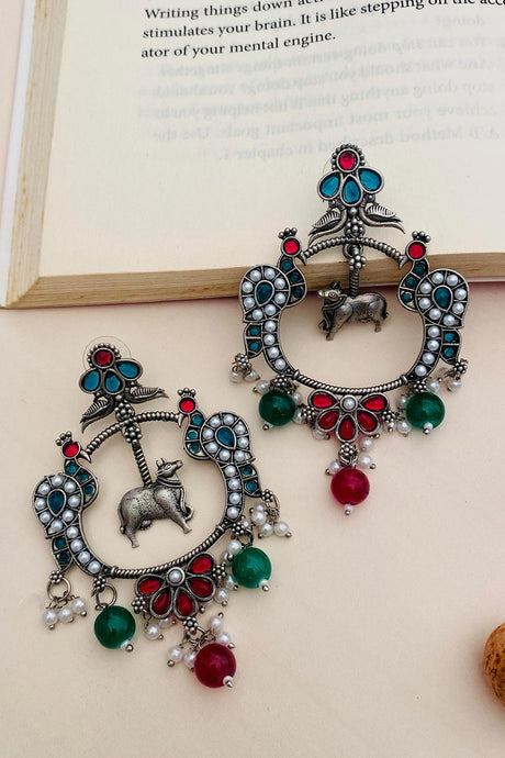 Silver Beadwork Fiber Chandbalis