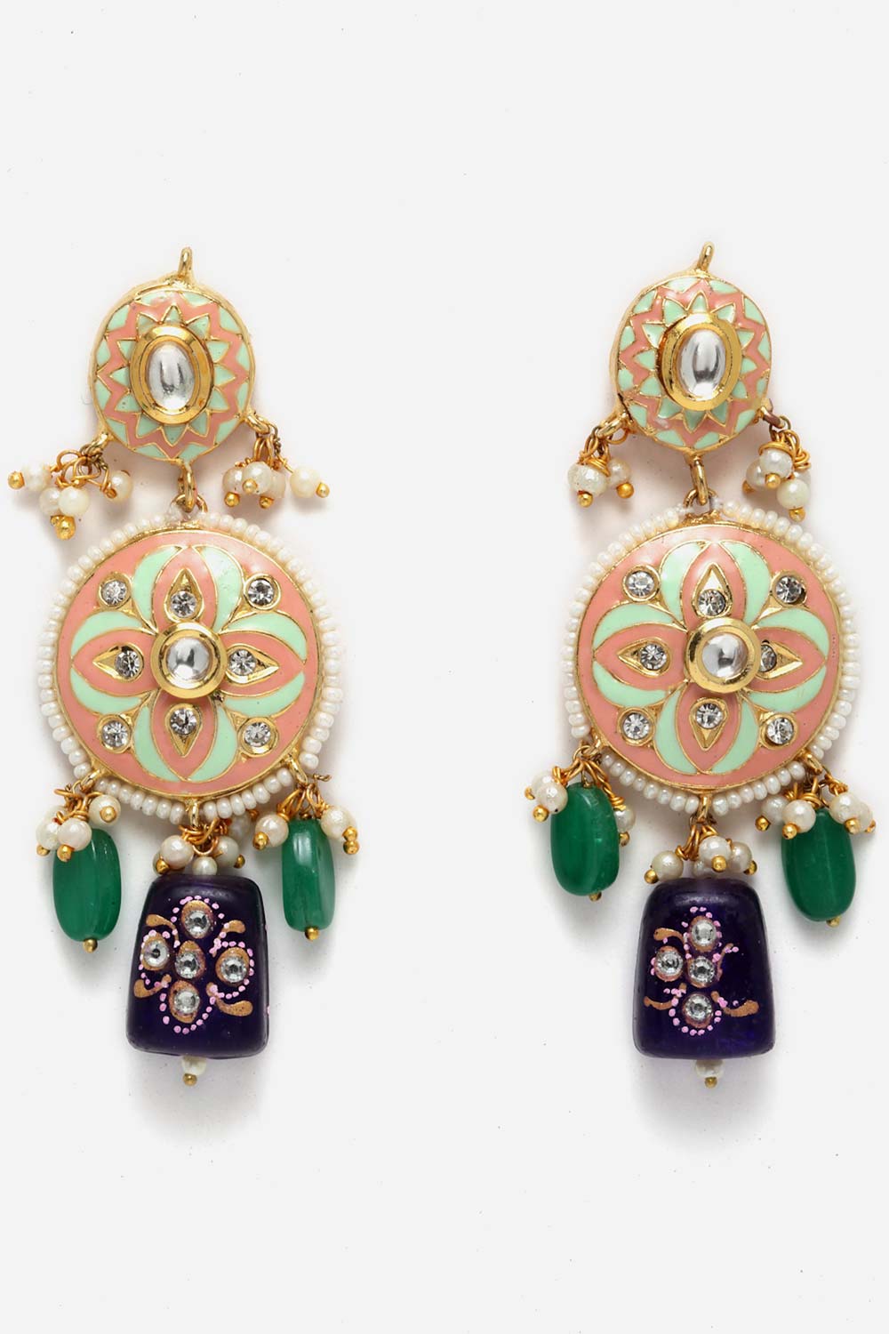Blue And Green Gold-Plated Kundan And Pearls Drop Earring