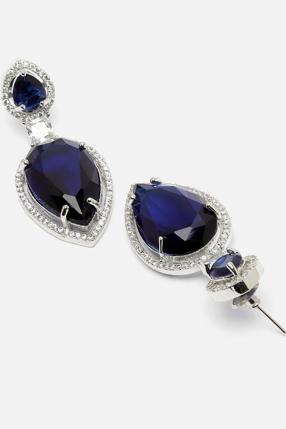 Blue And Silver Drop Earring With American Diamond And Natural Stones