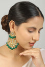 Emerald and off white beaded Kundan inspired crescent shaped earrings with floral arrangement at top.