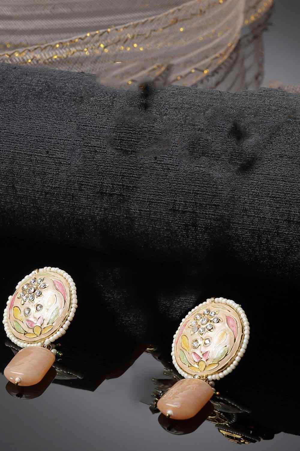 Peach And Gold Drop Earring With American Diamonds And Pearls