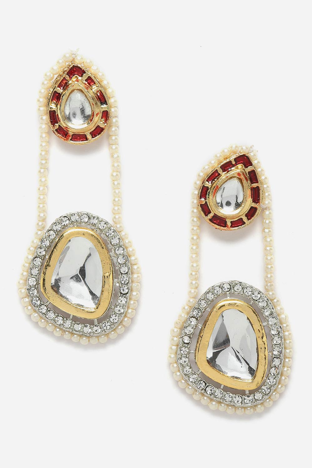 Red And Gold Drop Earring With Kundan And American Diamonds