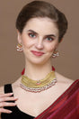 Red And Gold Drop Earring With Kundan And Pearls