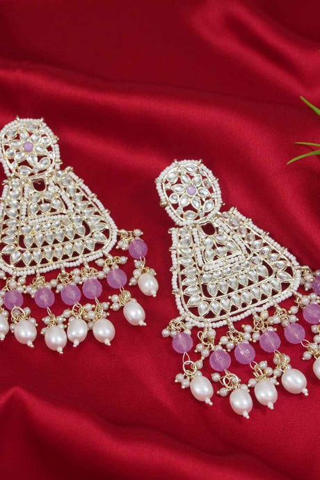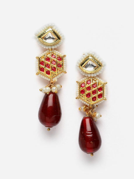 Maroon And Yellow Drop Earring With Kundan And Pearls