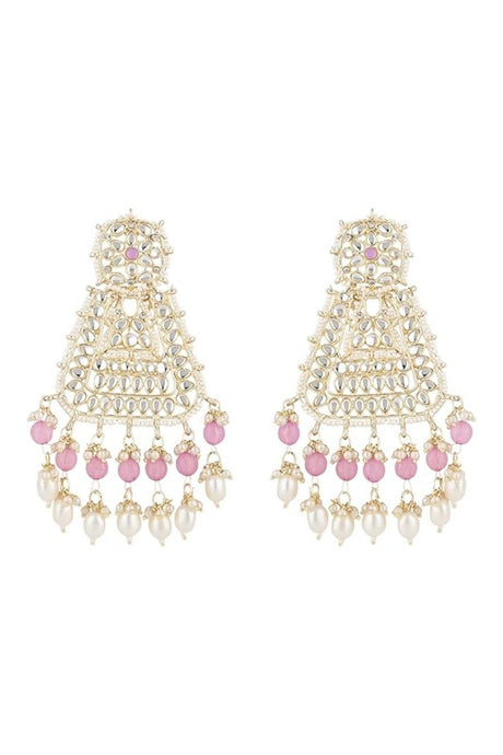 Pink And Green Drop Earring With Kundan And American Diamonds