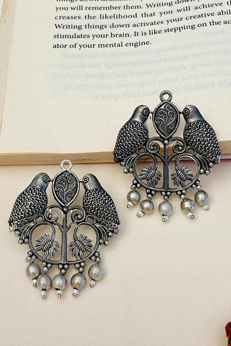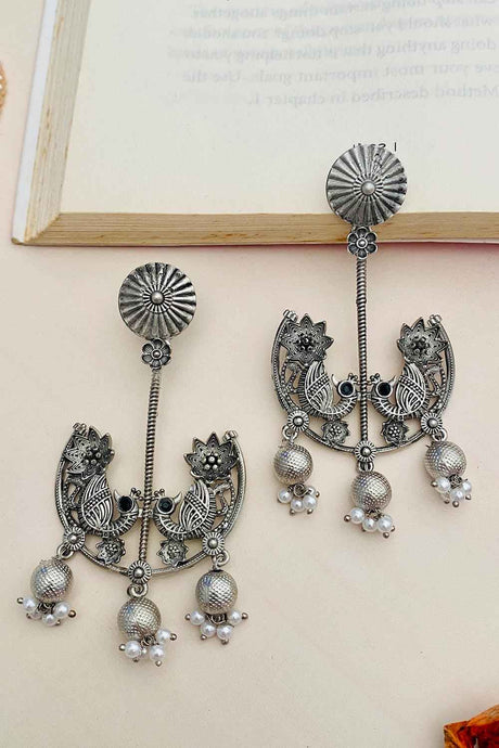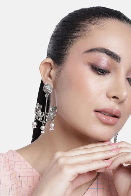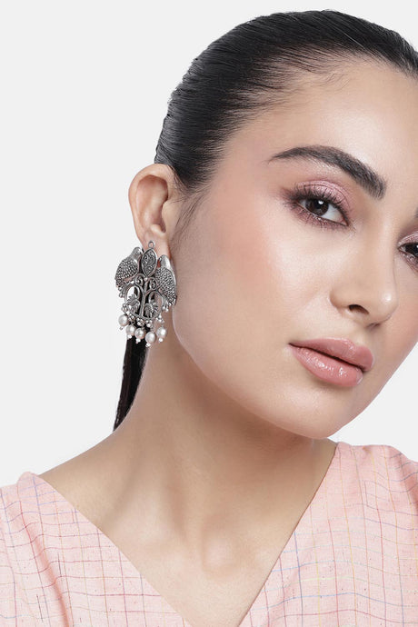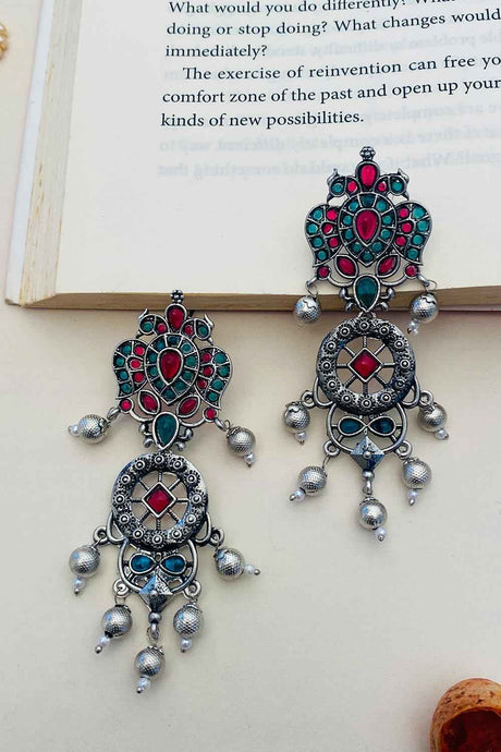 Blue And Silver Drop Earring With American Diamond And Natural Stones