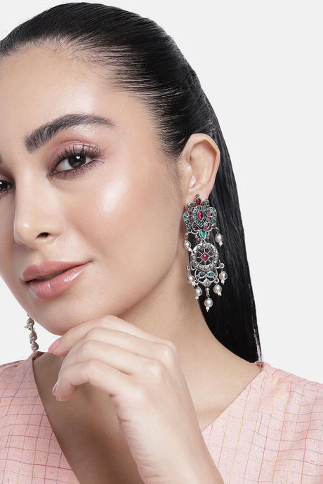 Grey And Green Drop Earring With Kundan And American Diamonds