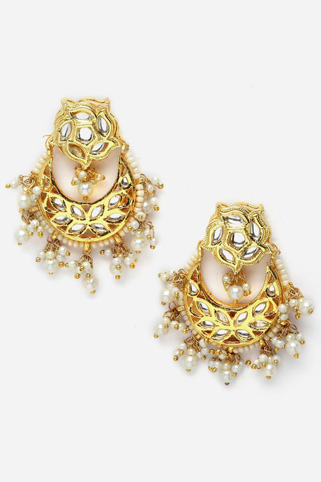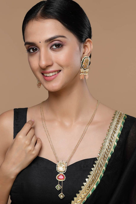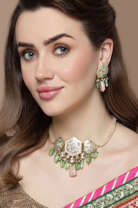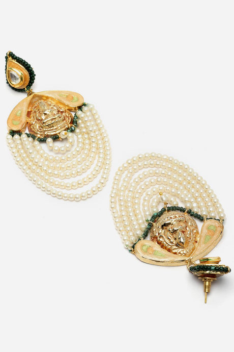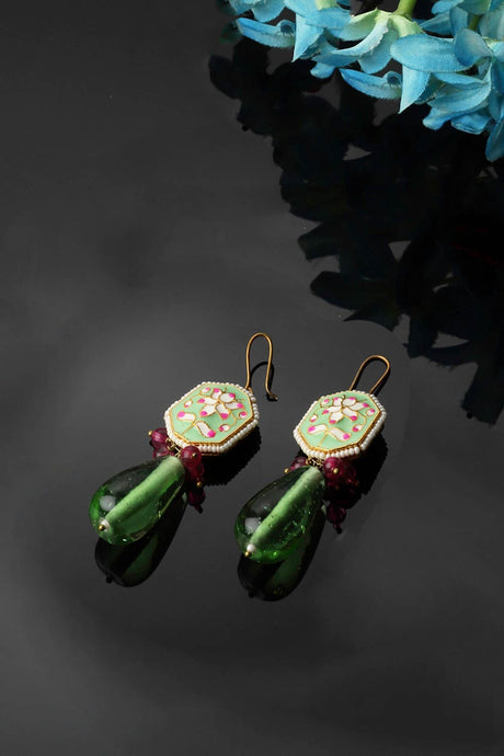 Green And Gold Drop Earring With Kundan And American Diamonds