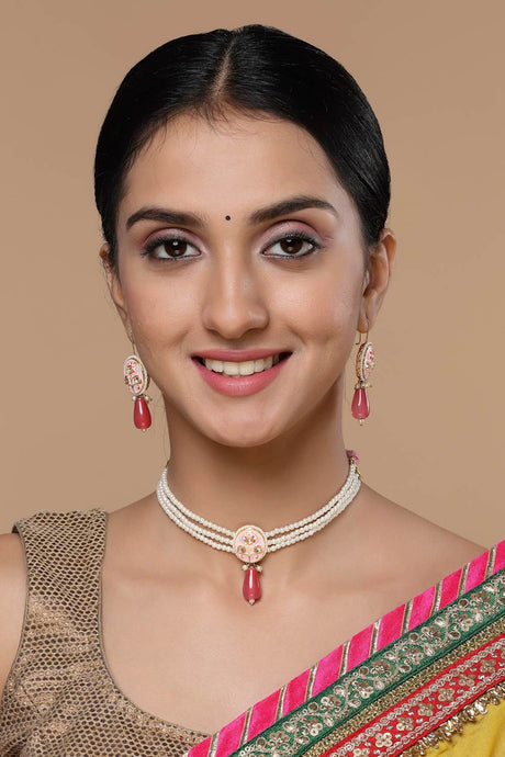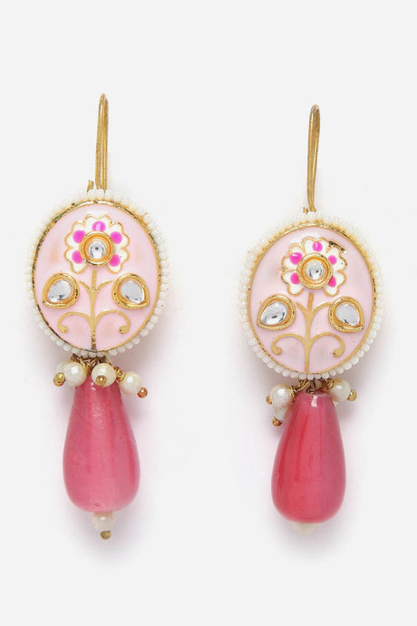 Peach And Pink Drop Earring With Pearls And Natural Stones